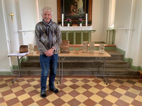 De er alle lavet af affaldssten (teglsten og tagsten, savet over på tværs) fra lokale kirker.